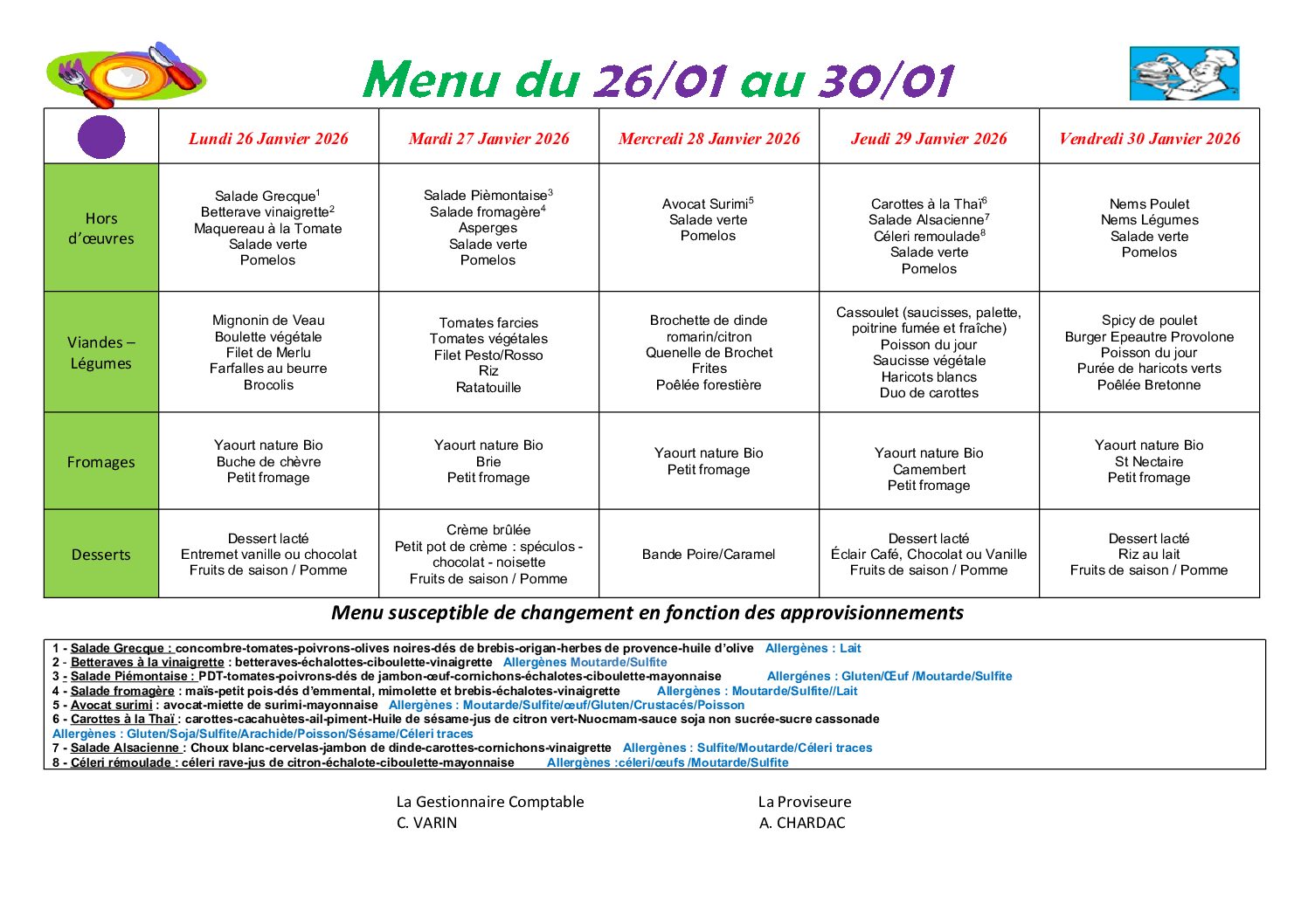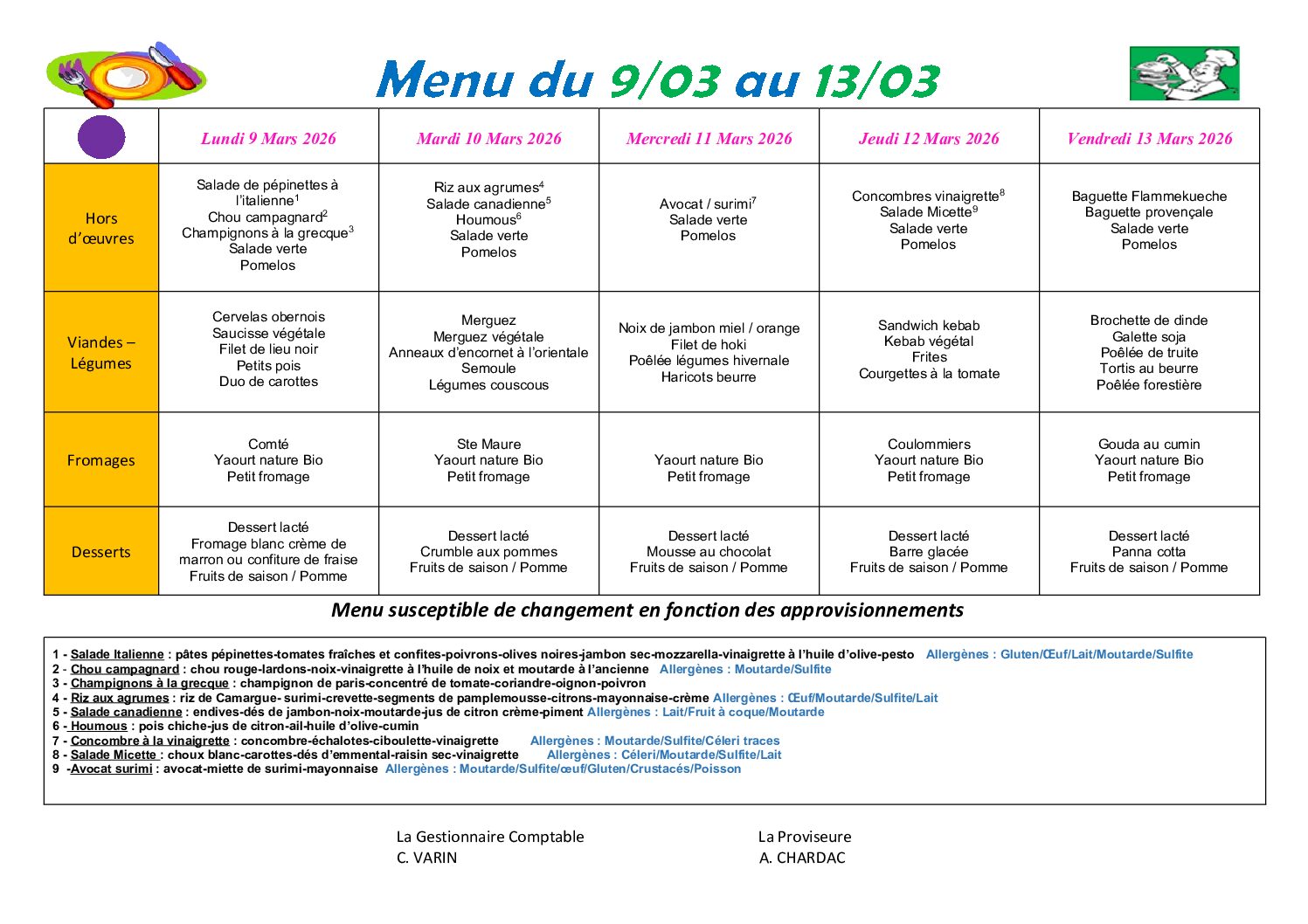 Les plats sont élaborés sur site et servis frais. Les menus, diversifiés, respectent les règles d’équilibre alimentaire tout en offrant chaque jour un choix aux élèves.